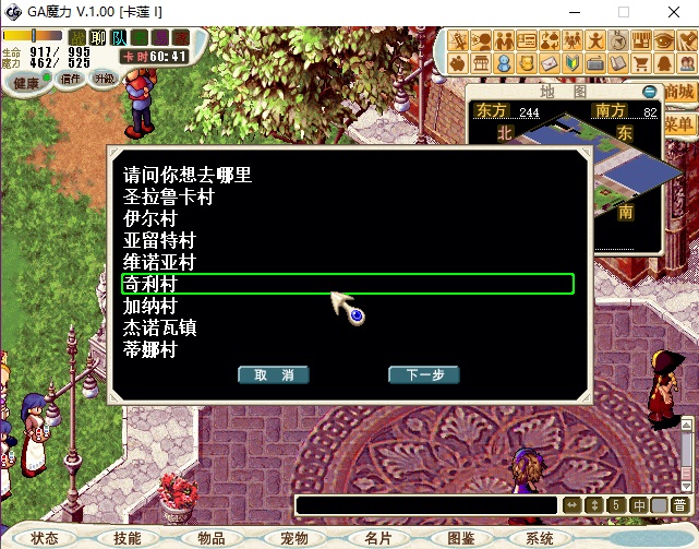 这位大神的教程)。使用简单,进游戏在东门口(见图1)找到传送NPC,直接对话然后翻页找到自己想去的地方鼠标点选就可(见图2)。代码是在GA引擎下写的,如果是用其他的引擎可以自行校对接口。更多的坐标可以自行在warppoint这个列表里面增加。新手,非专业,有bug纯属正常,谢谢指教。