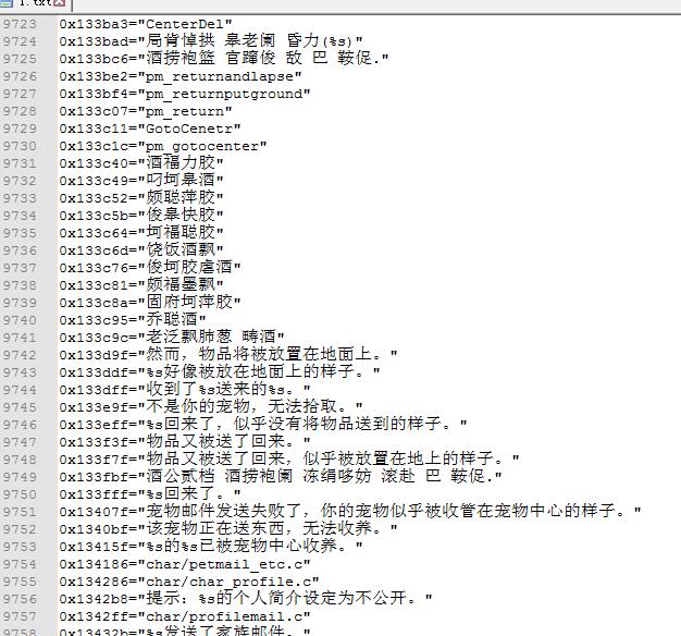 0 |7 h6 S- p! n7 c, L妖城在线论坛更新了一下 刚才差了一位偏移 并加入了能够检索出所有非全英文字串