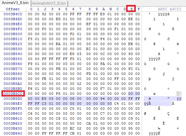 ainfo.bin 每個動畫資訊包含 12 Bytes 拆成四段來看(Low Byte First)