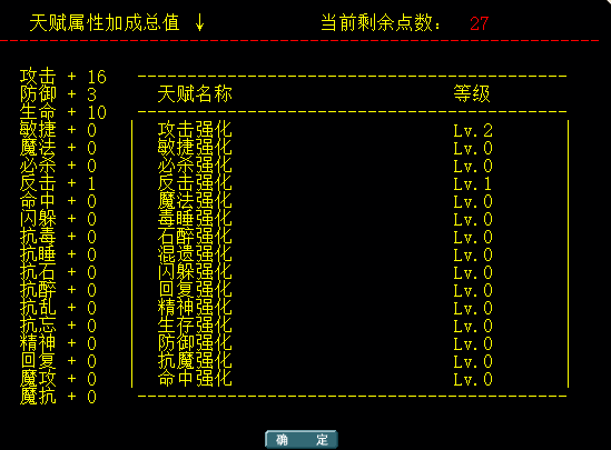 新出炉 人物天赋功能