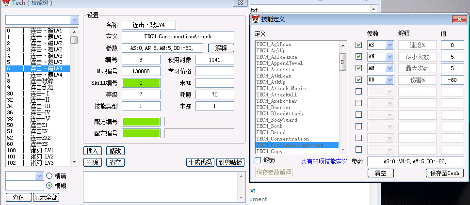 » 分享下珊瑚第一版cgtools的技能参数文件