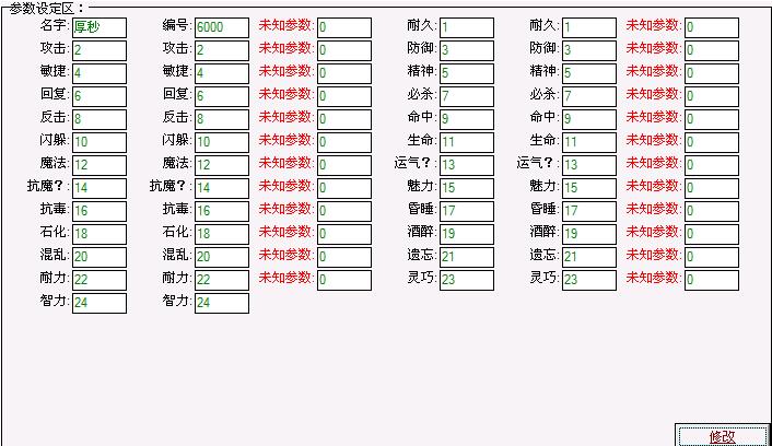 0 @# _' V$ y( q我已经把被制造武器的各个属性全部修改为0,