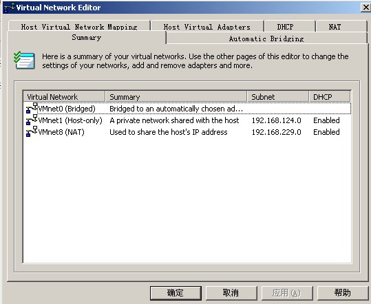 visual Network Editor里面看到,有三个网卡,XP下的网络连接出现2张网卡,VM1和VM8,提示VM1是(host only),
